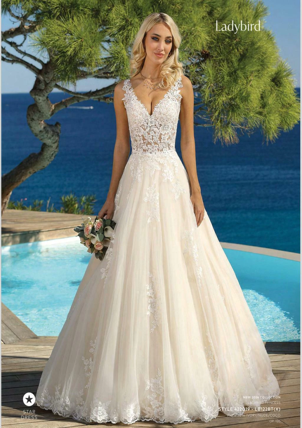 É a opção perfeita para a noiva que deseja exalar elegância e charme em seu grande dia. Com um modelo princesa encantador, este vestido destaca-se pelas aplicações de renda na saia, trazendo um toque de sofisticação e romantismo.